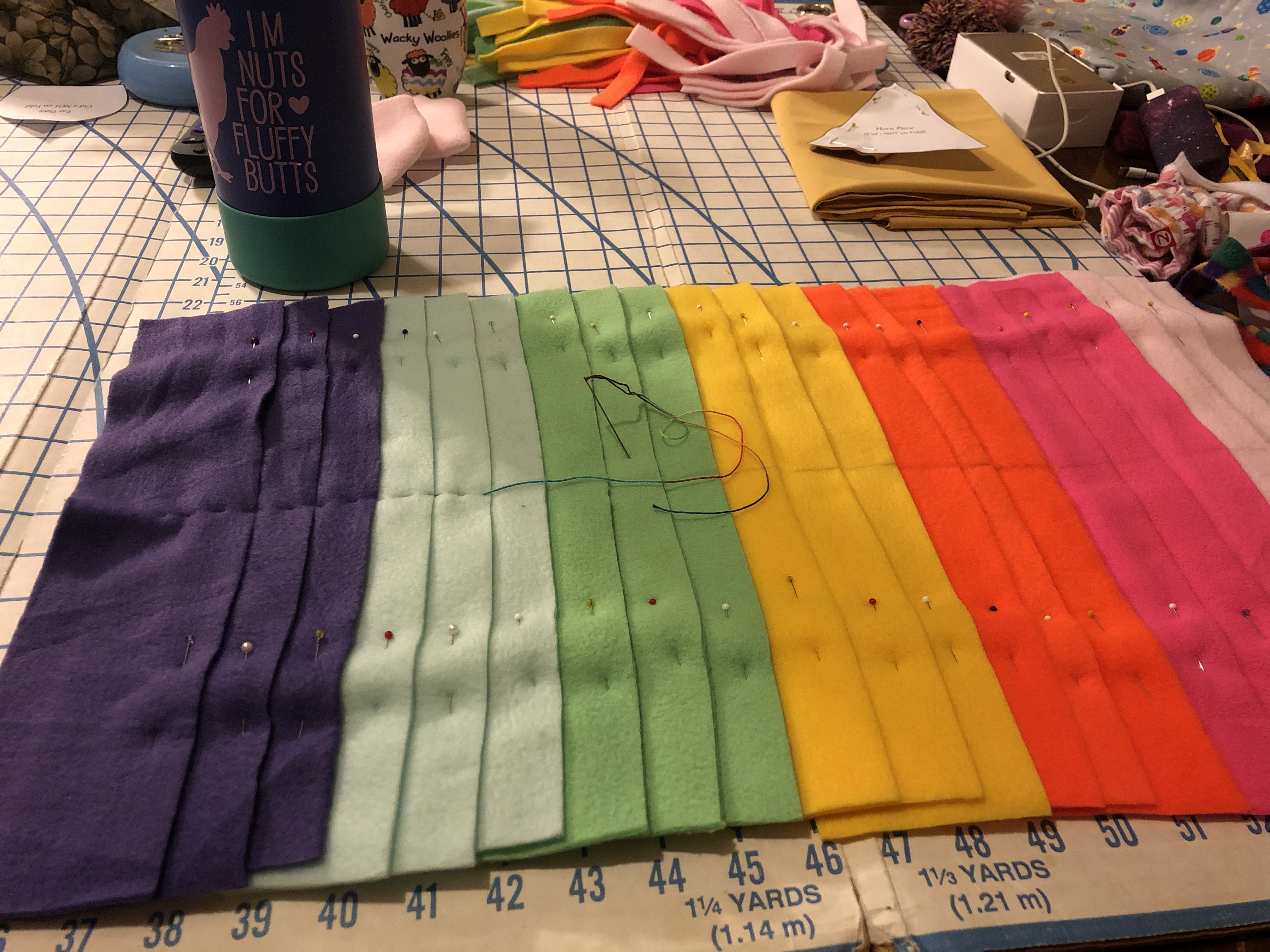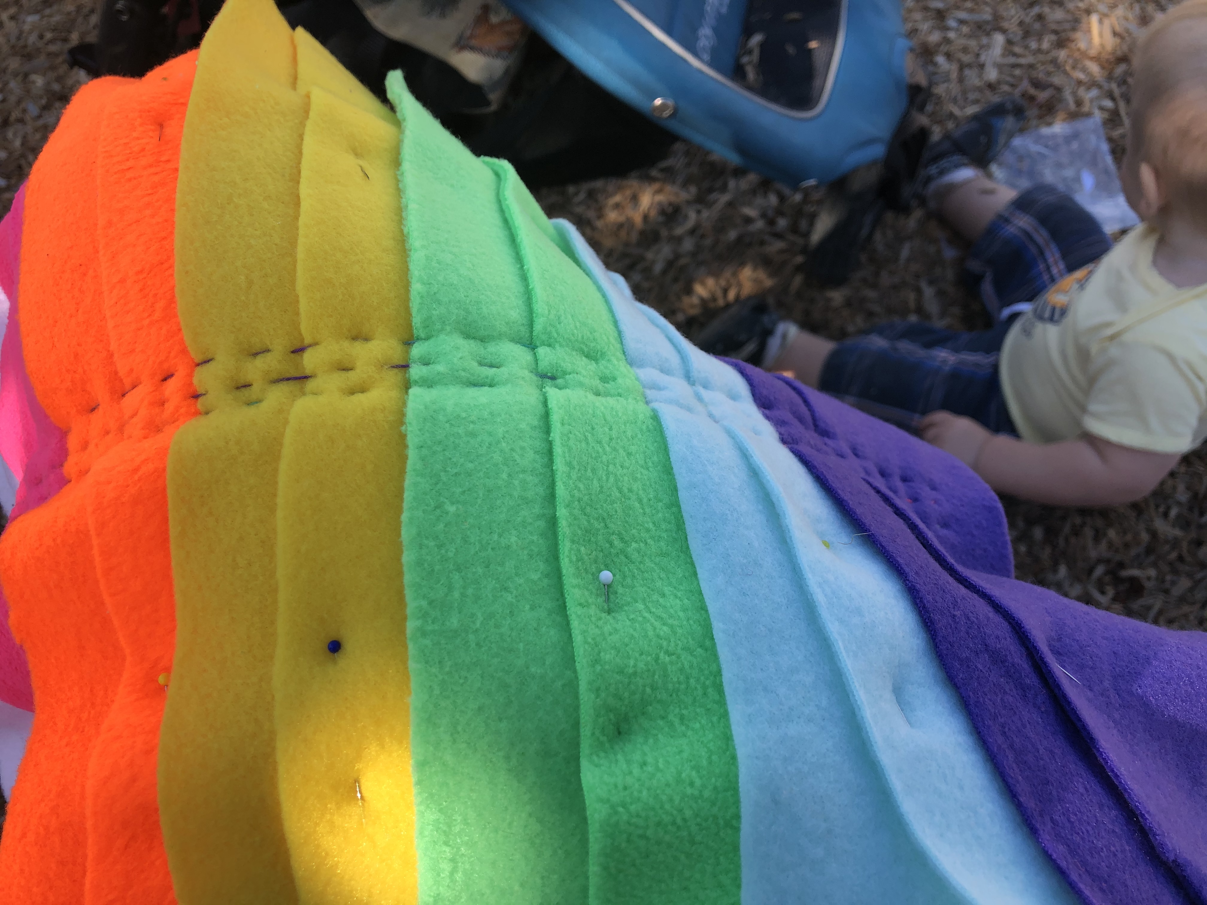 Ballet lesson? No problem, I can sew while the big one “shitters like a mouse” in class (the 4 yo’s words, not mine) and the baby tries to knock over every garbage can in the waiting area. Birthday party in the park? Score! Big kid goes on the slides and the baby seems to be content to throw mulch into the stroller. Everyone got fed, no one got hurt, and I finished a single row on the mane and three rows on the tail. #winning