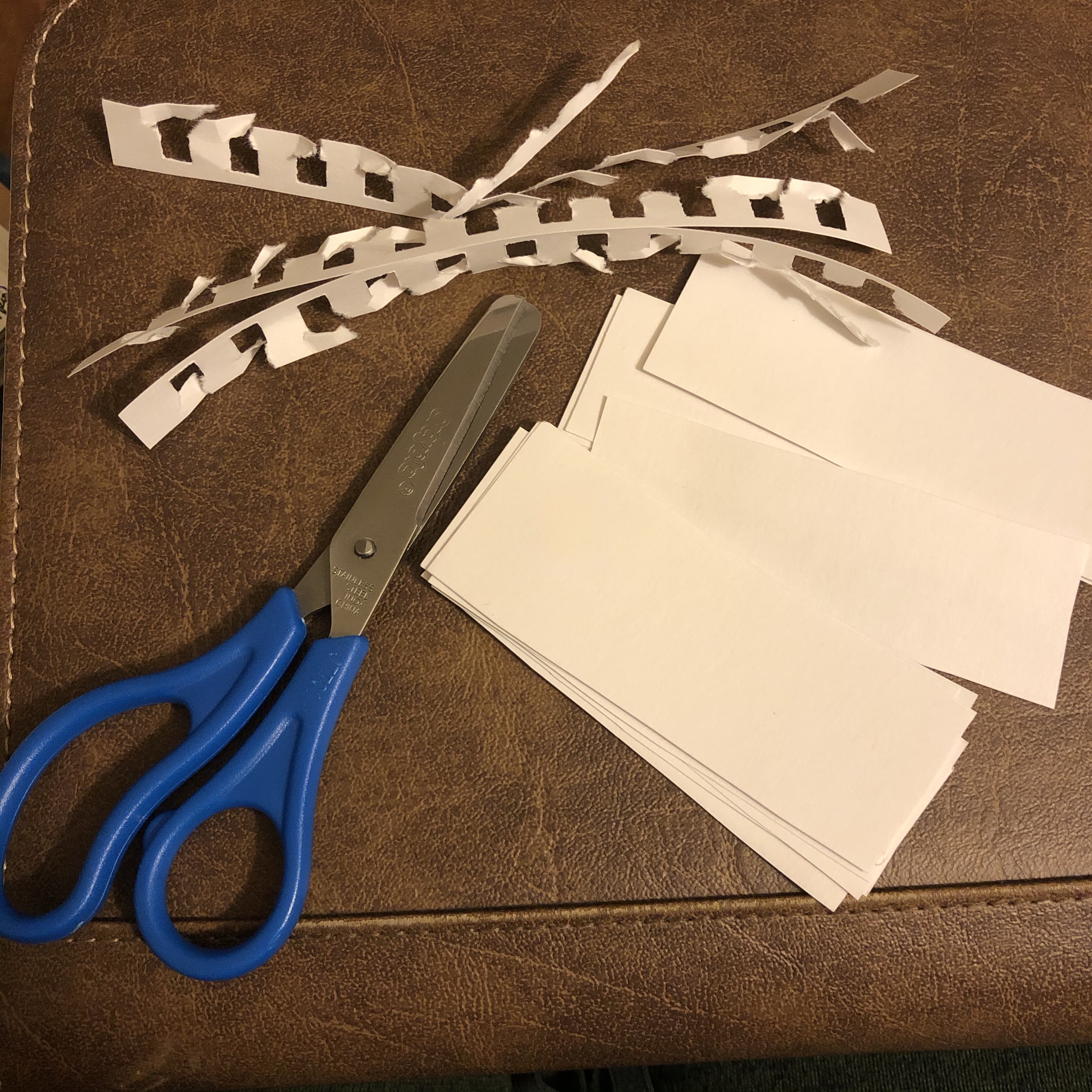 Things start getting moved around on my crispy, clean list. Ideas tossed out, symbols obscured as they become irrelevant. New entries are noted next to old. Carefully written paper slips become a snarl of cross-hatching and side notes. Soon, my muttering starts to attract the attention of my daughter, so I’m forced to use my best Jedi-Mama-trick to deflect her curiosity while I continue to mash paper and various odd bits into the ornaments.