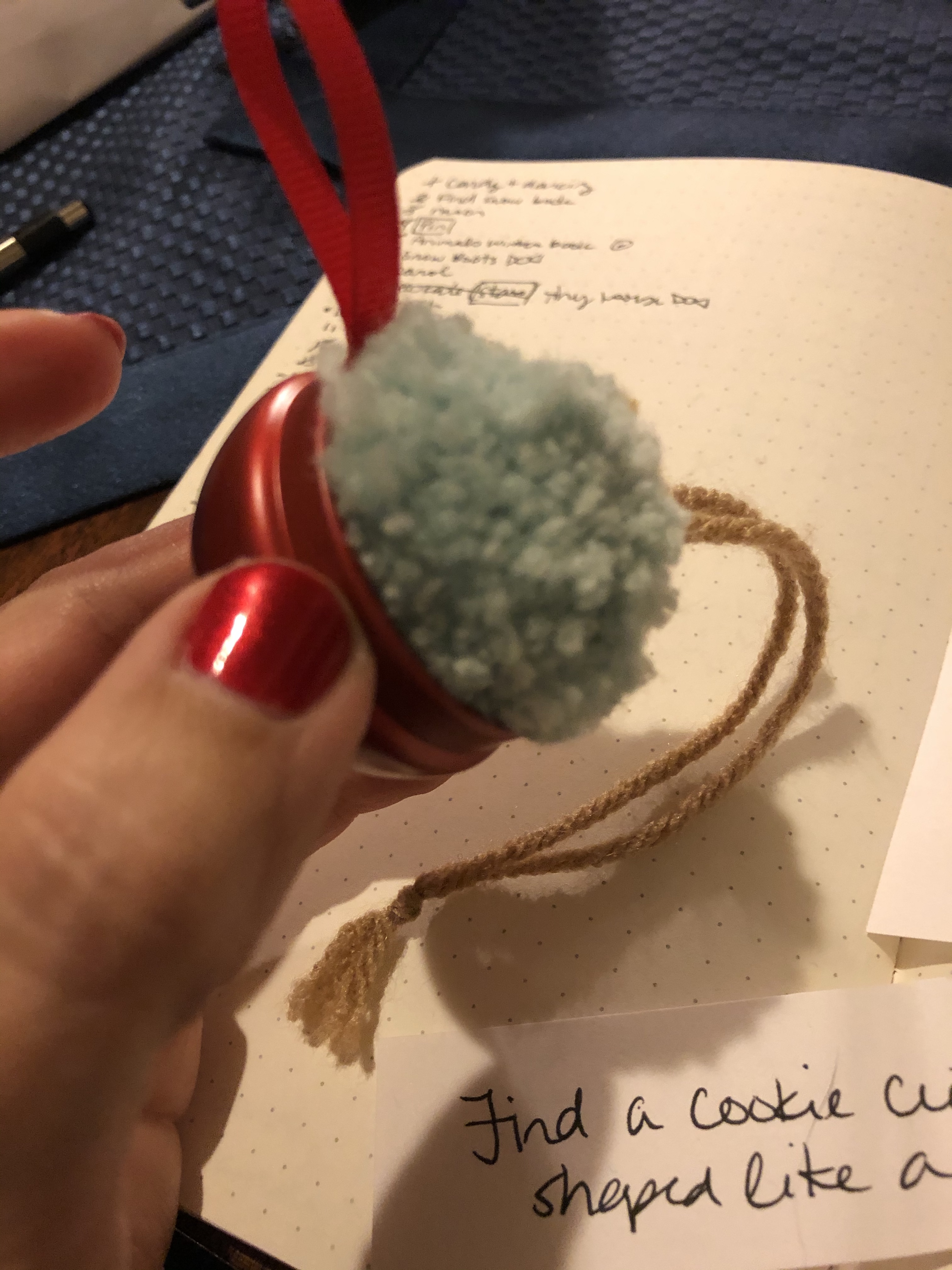 Since then, we’ve opened up three more ornaments: one was an item (this was the easiest), one was to look for a book which I didn’t think to look for beforehand until after I wrote it down, then couldn’t find, so we just made up a title we knew was close by (#nailedit), and the last I threw a candy in and took out the paper because we didn’t get the tree on time (*shakes fist at the rain*).