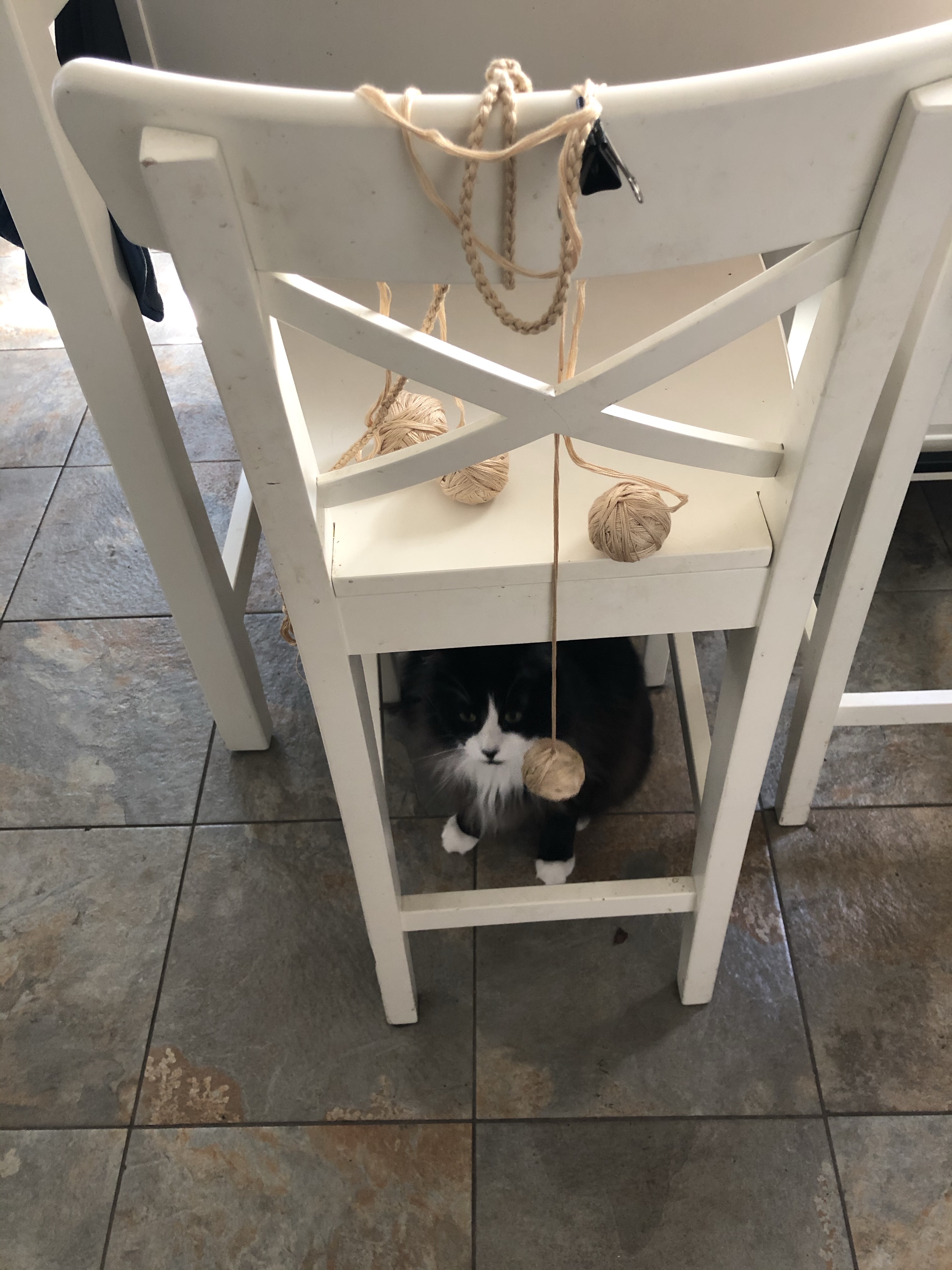After a week, I felt like that guy from Green Eggs and Ham. I braided using my toes, a drawer, a book, a door. I braided standing up, sitting on the ground, outside, upside down. Whenever and wherever I could, really. I fended off kittens, toddlers, and well-meaning four-year-olds. And finally, I had a ROPE!
