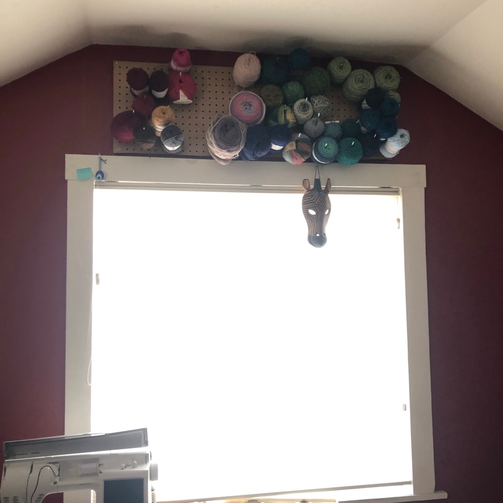 Reason it isn’t done: I spent two afternoons trying to get the first board up. Once I got all the yarn wound into balls and cakes hung up, I had sated the Get It Done monster enough to ignore its taunts and haven’t pick up a drill or a yarn winder since.