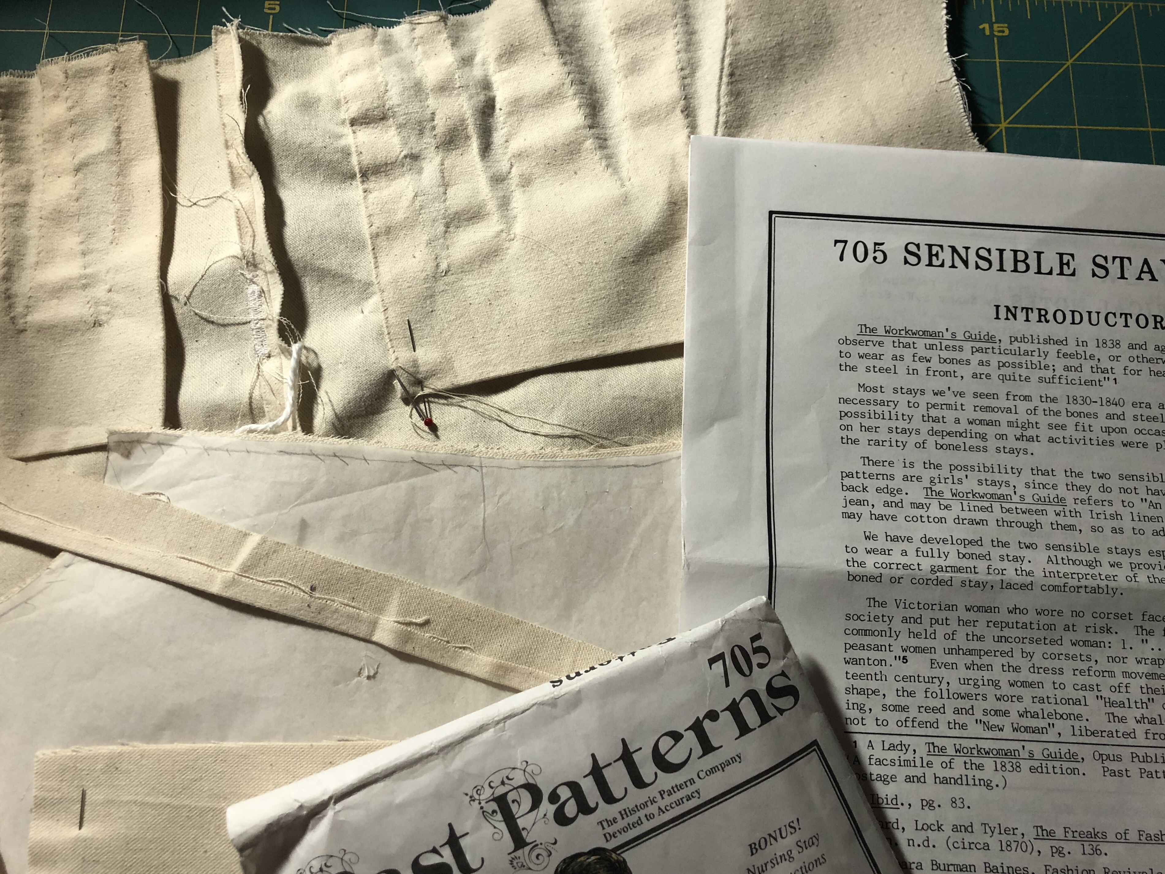 This project has been going on for the better part of a year (probably longer, but my embarrassment has limits). I purchased the pattern for “sensible stays,” aka a corded corset, because I was interested in attempting to wear one in lieu of the standard options for a modern lady’s underthings. There was an entire Wardrobe Plan: I was going to make the stays, then the standard comfy underpinnings, then take measurements on top of those to make myself a whole set of reasonable and functional dresses and skirts. A handsome Plan! *sheds a tear*