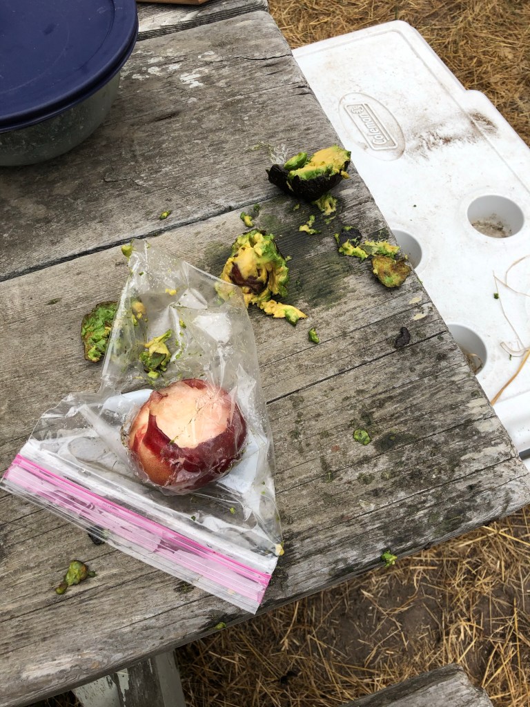 The next morning we woke up to CAMP INVADERS. No, not raccoons. RAVENS. Cheeky buggers, too – one kept sneaking up to the table every time we turned our backs. Luckily, all that was lost in the morning battle was some tortillas. That is, until we returned later that afternoon to find a massacred avocado and a wounded nectarine. *shakes fist at smart birds*