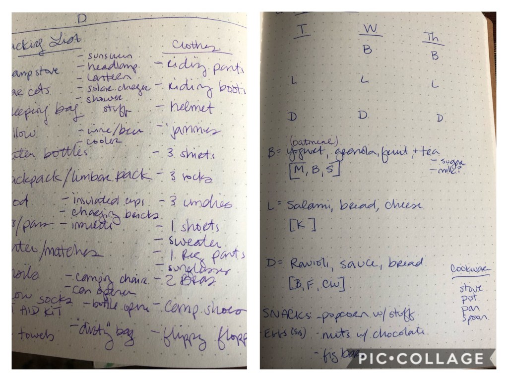 Not just any camping though. I met up with a longtime friend of mine, plus her three horses (aka The Lady League, as the horses are all mares). All appropriately socially distanced and with masks, of course. However, since we weren’t going to be sharing any food, equipment, etc, I had to bring everything myself. Cue the extensive and detailed lists!
