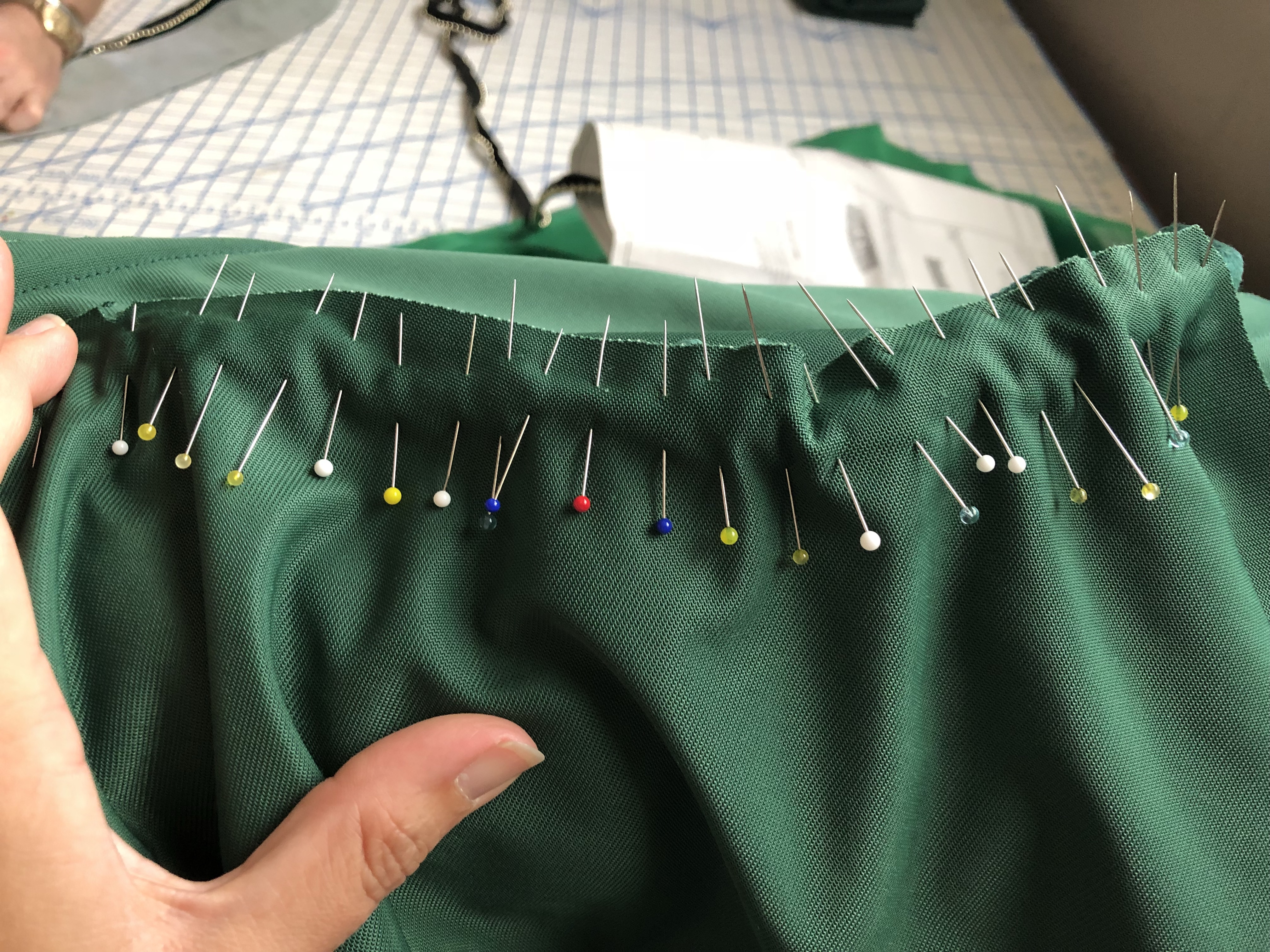 The complication? I was pretty sure that my water broke earlier that morning. I call Labor & Delivery to check in, but the nurse didn’t seem in a hurry to have me come to the hospital. Perfect! I have lining and fashion fabric to cut out and organza to hem!