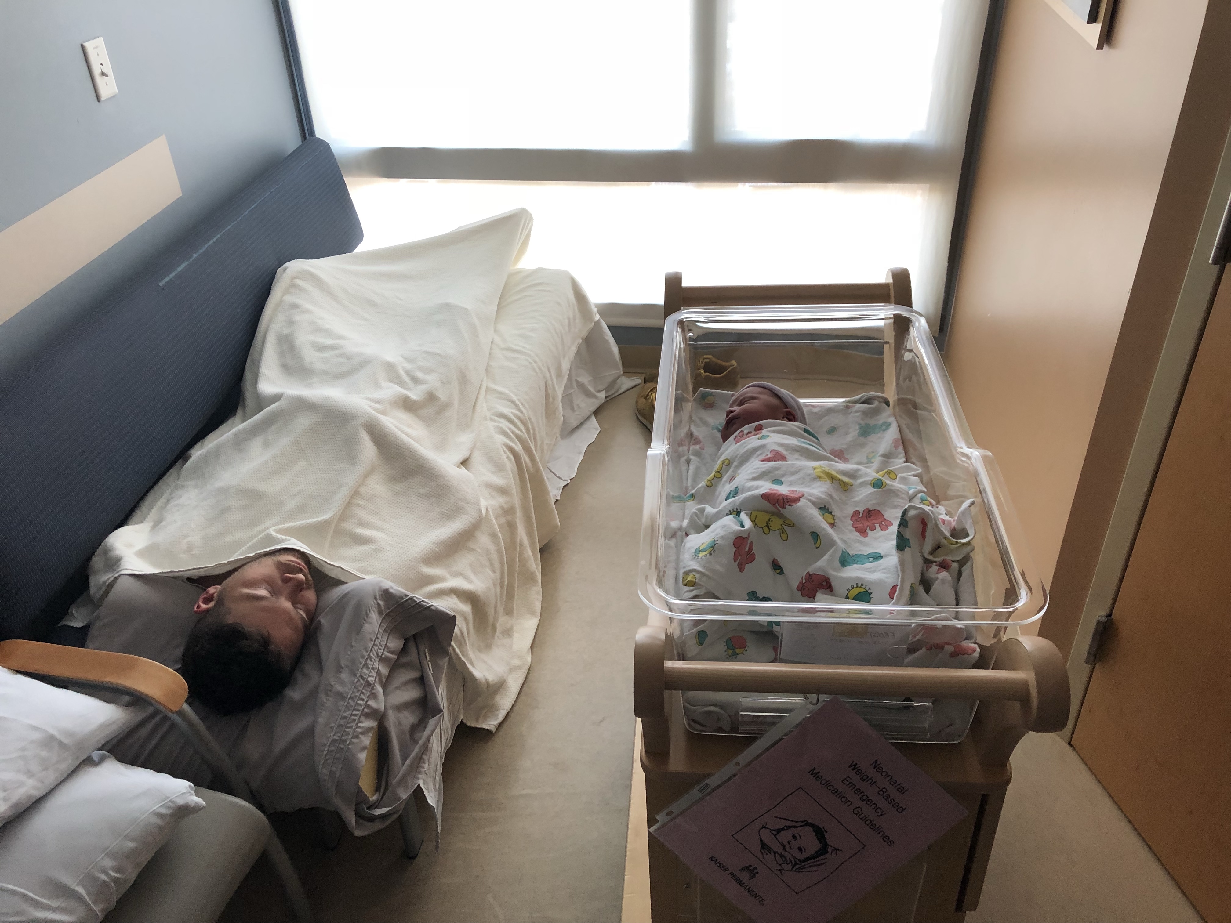 The nurse tells the anesthesiologist, who was less than two inches from puncturing me, that the epidural is a no-go because I’m going to have a baby right NOW. The realization dawns on me through the fog of pain that there will be no epidural and that we are “doing it live,” as my partner likes to say. This thought was mainly expressed by my muttering “nononononoNOnonono” as the nurse laid me down and prepared the room for a newborn.